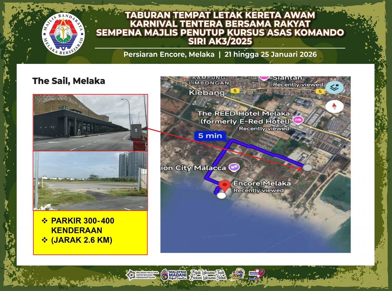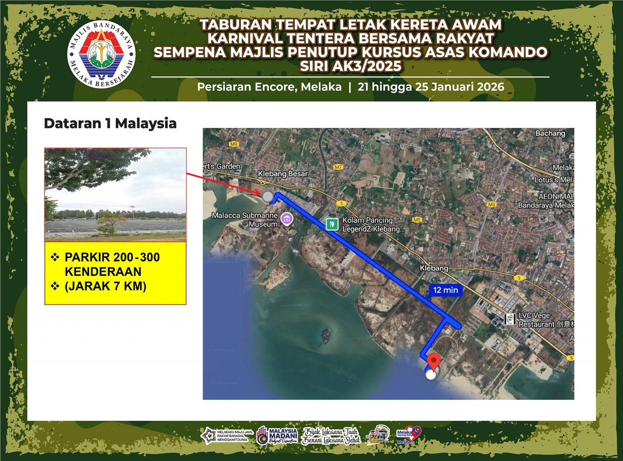 KEMUDAHAN TEMPAT LETAK KERETA AWAM BAGI PROGRAM KARNIVAL TENTERA BERSAMA RAKYAT SEMPENA MAJLIS PENUTUP KURSUS ASAS KOMANDO SIRI AK3/2025
