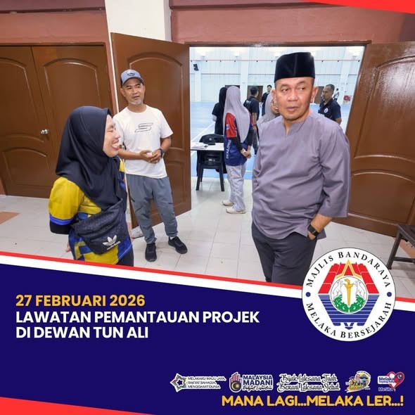 27 Februari - YBhg. Datuk Hj. Shadan bin Hj. Othman, Datuk Bandar MBMB meninjau kerja-kerja naiktaraf gelanggang badminton dan bola jaring di Dewan Tun Ali.