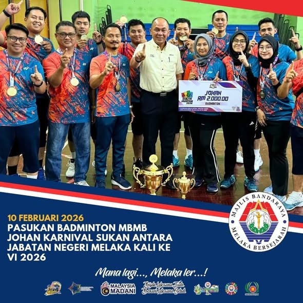 10 Februari - Sekalung penghargaan dan tahniah kepada konvenor badminton MBMB yang berjaya merangkul Johan sempena Karnival Sukan Antara Jabatan / Agensi Kerajaan Negeri Melaka Kali Ke VI 2026 .