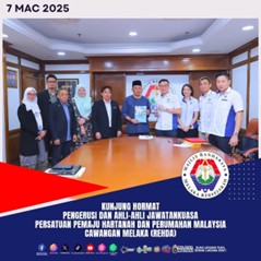 7 Mac - Sesi Kunjung Hormat Pengerusi dan Ahli-ahli Jawatankuasa Persatuan Pemaju Hartanah dan Perumahan Malaysia Cawangan Melaka (REHDA) kepada YBhg. Datuk Hj. Shadan bin Hj. Othman, Datuk Bandar MBMB telah diadakan di Bilik Mesyuarat Datuk Bandar.