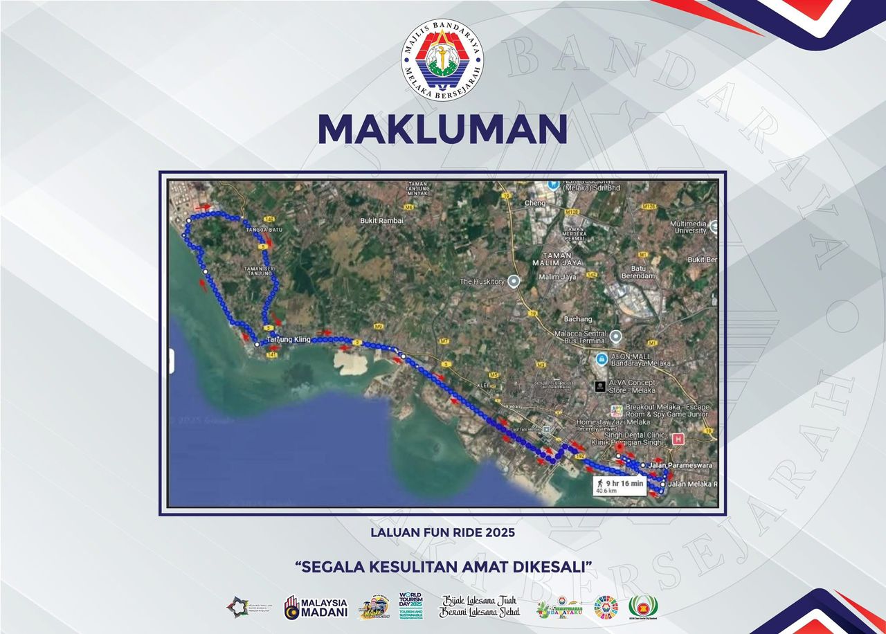 Dimaklumkan bahawa Melaka City Fun Run & Ride sempena Vibrant Melaka 2.0 Bridging Technology and Community For Urban Sustainability akan diadakan pada 12 Julai 2025 ( Sabtu ) bermula jam 7.00 pagi hingga 11.00 pagi bermula di Memorial Pengisytiharan Kemerdekaan , Banda Hilir, Melaka.