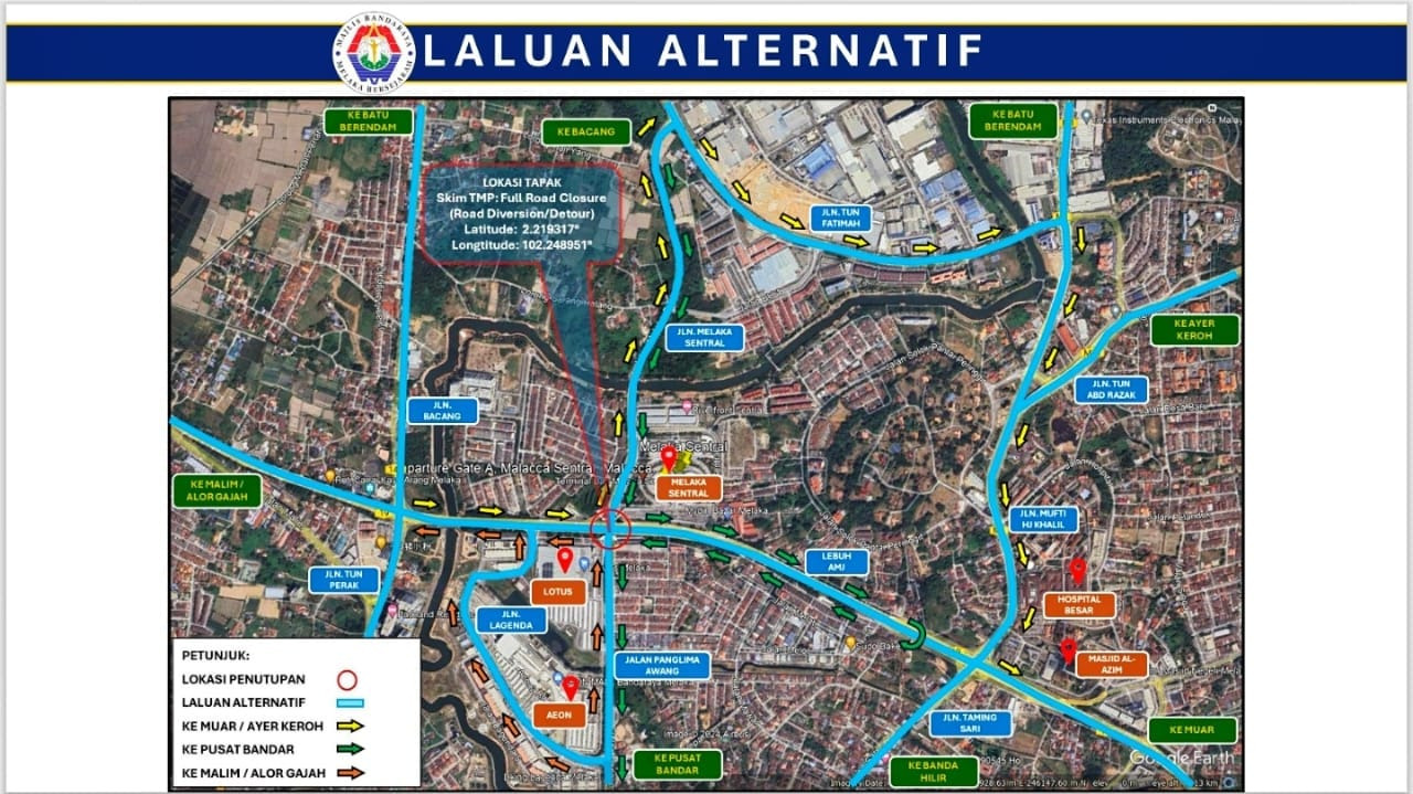 Sila rujuk Infografik dan Laluan Alternatif yang disediakan. Pengguna jalan raya dinasihatkan untuk mematuhi tanda arah dan papan tanda keselamatan yang disediakan serta mematuhi arahan petugas trafik di tapak. Berhati-hati ketika memandu dan rancanglah perjalanan anda.