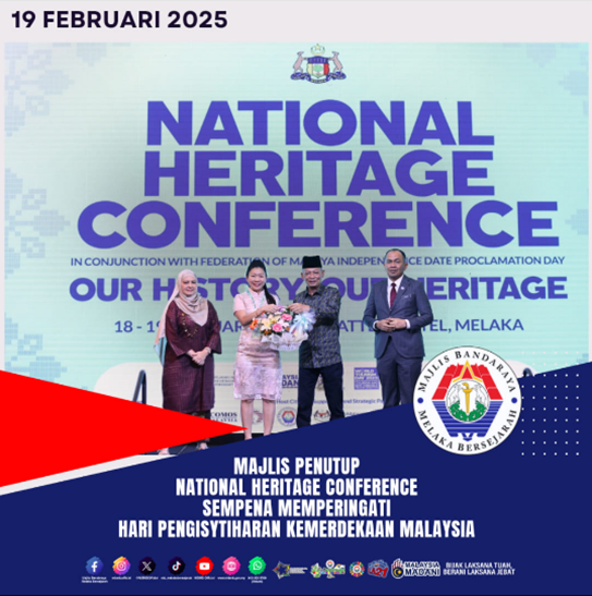 19 Februari - Majlis Penutup National Heritage Conference sempena Memperingati Hari Pengisytiharan Kemerdekaan Malaysia telah disempurnakan oleh YB Datuk Zulkiflee bin Datuk Seri Mohd Zin, Timbalan EXCO Kanan, Perumahan, Kerajaan Tempatan, Saliran, Perubahan Iklim dan Pengurusan Bencana.